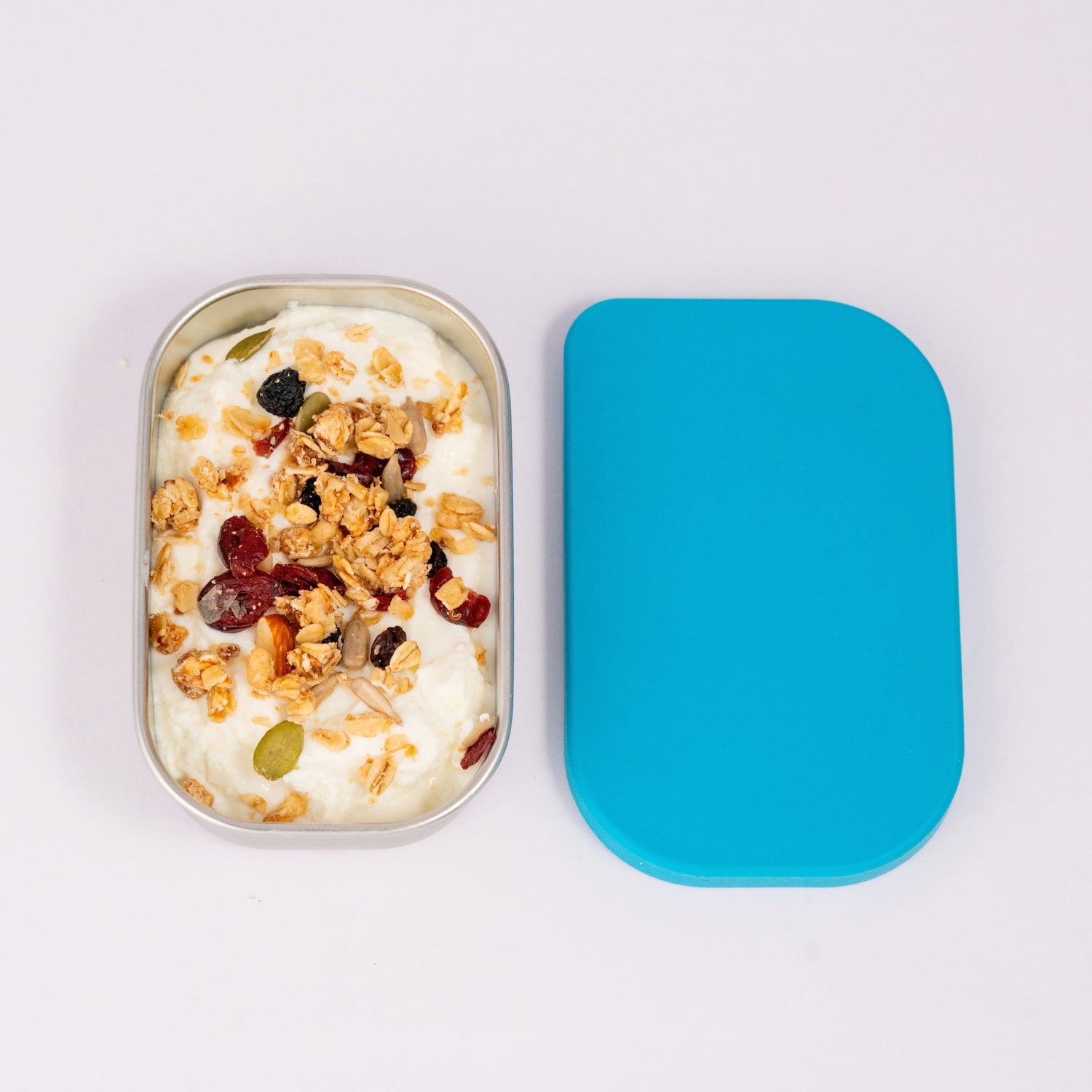 Inside, you’ll find three thoughtfully sized compartments that keep flavors separate and meals neat. A custom-fit silicone seal makes the box leakproof and spillproof, so sauces stay sealed, and snacks stay dry.